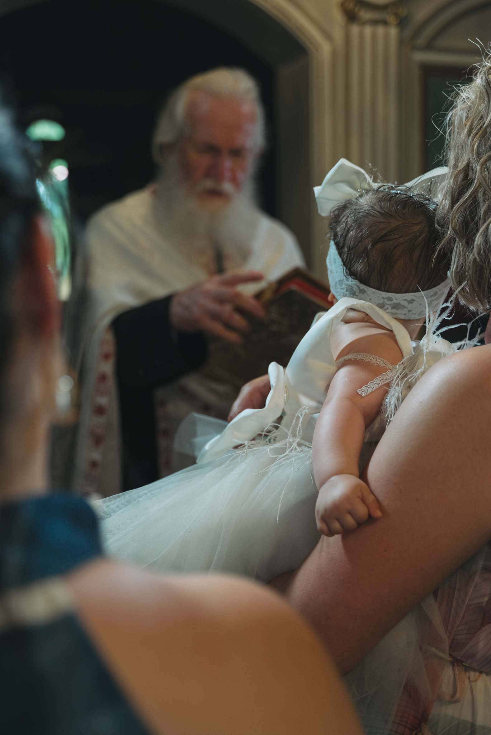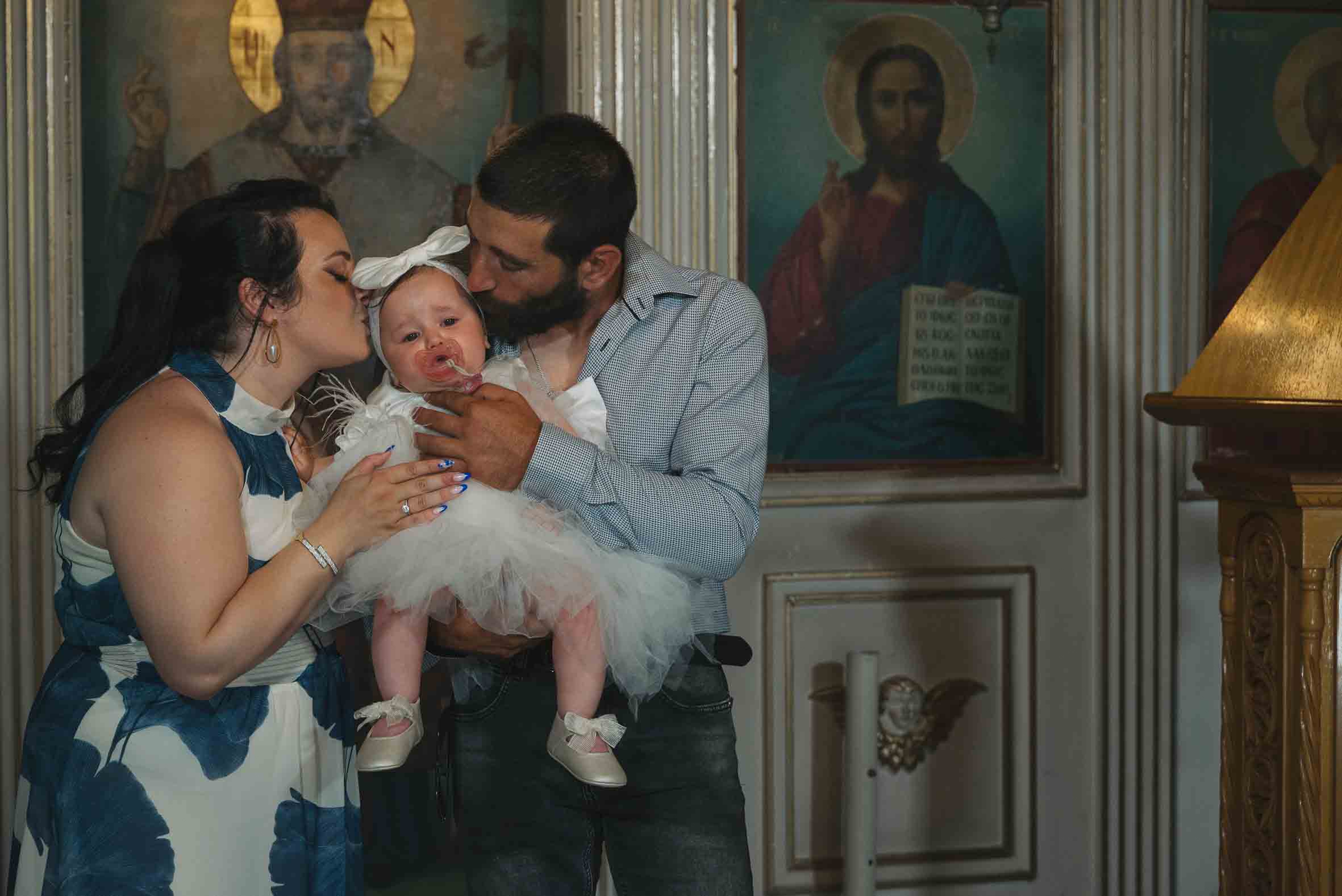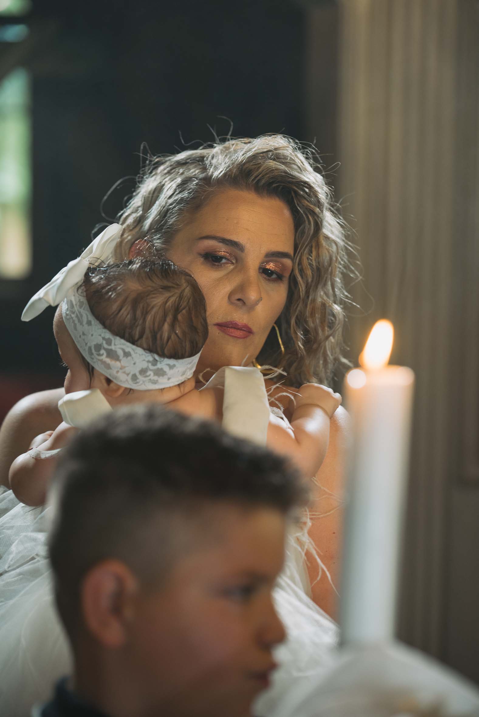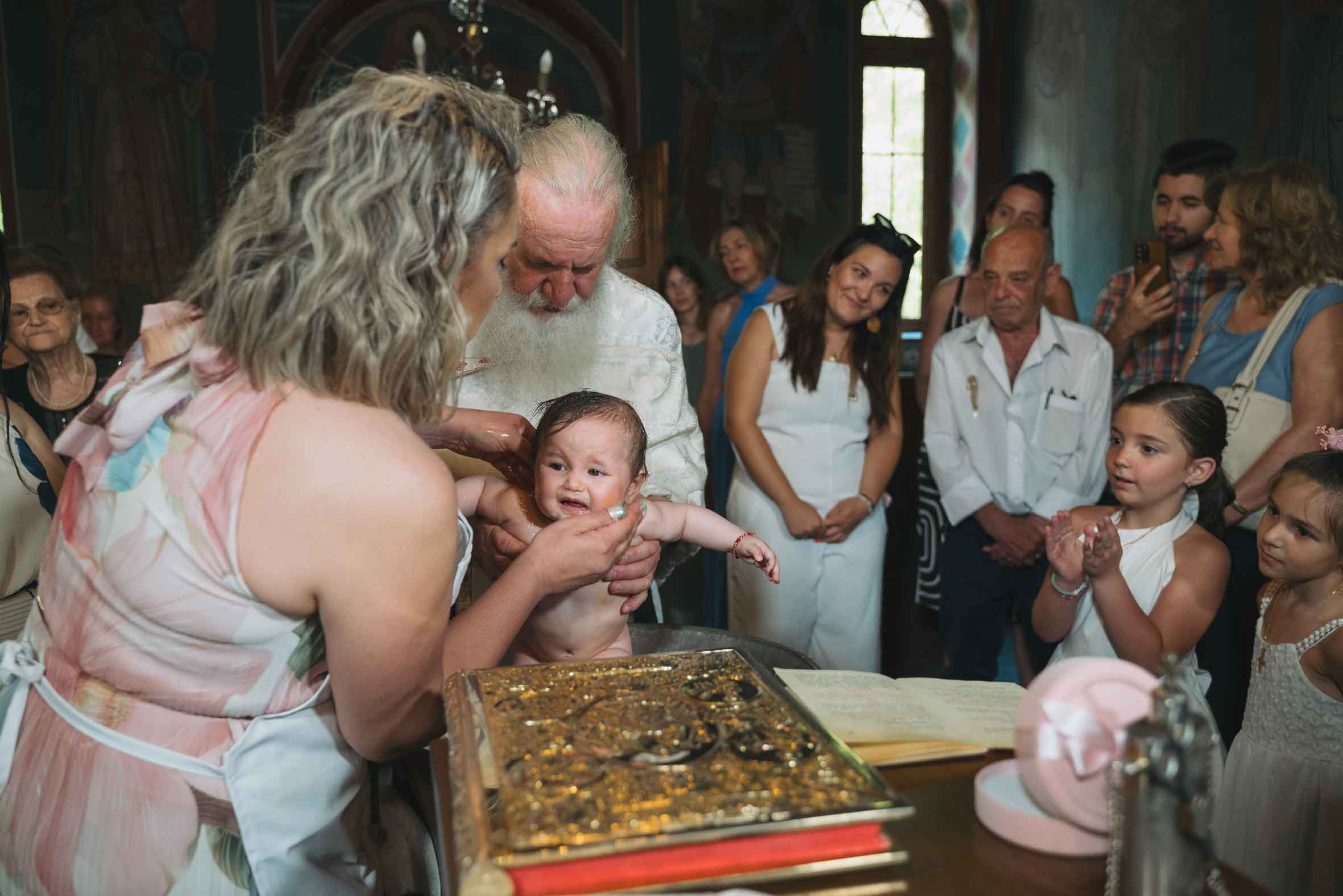 Η μικρή πρωταγωνίστρια μάς χάρισε το πιο γλυκό της χαμόγελο και κέρδισε τις καρδιές όλων των καλεσμένων. Στις λήψεις μας επιλέγουμε σταθερά την ενεργητική ματιά, διότι θέλουμε να μεταφέρουμε την αυθεντική ενέργεια του μυστηρίου. Αντίθετα με τις τυπικές πόζες, εμείς αναζητούμε τα κρυφά βλέμματα, τις ζεστές αγκαλιές και το δέσιμο της οικογένειας με το περιβάλλον. Παράλληλα, ο ρομαντικός στολισμός με θέμα τον κύκνο συμπλήρωσε ιδανικά την κομψότητα της ημέρας, προσφέροντας υπέροχες λεπτομέρειες για τον φακό μας.