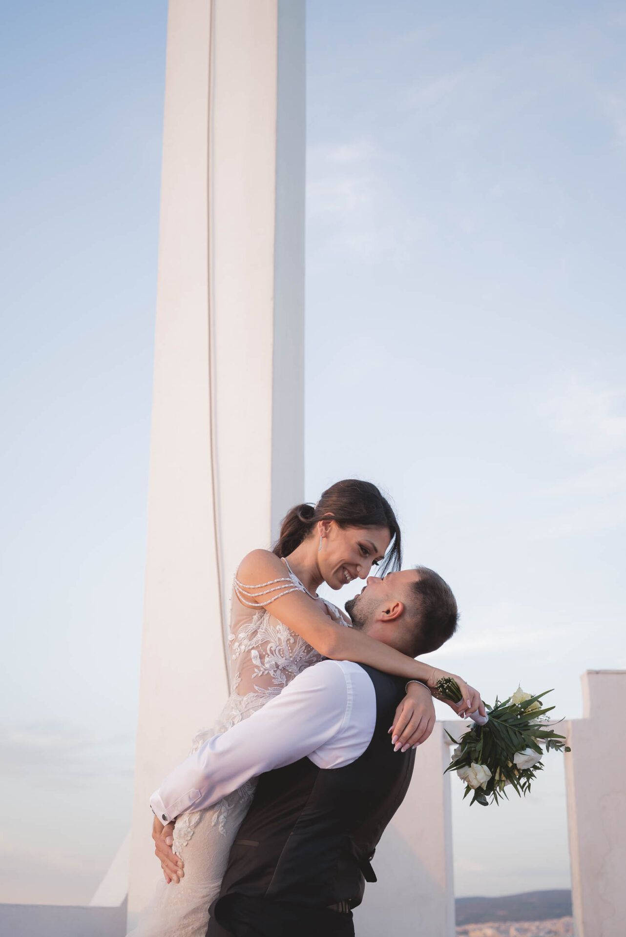 Το next day έγινε στη Νέα Κρήνη, σε ένα πιο ήσυχο, παραθαλάσσιο σκηνικό. Εκεί επέστρεψε η ρομαντική διάθεση — ηρεμία, θαλασσινός αέρας και φως που αγκάλιαζε το ζευγάρι. Ήταν η τέλεια ολοκλήρωση μιας ημέρας που τα είχε όλα.