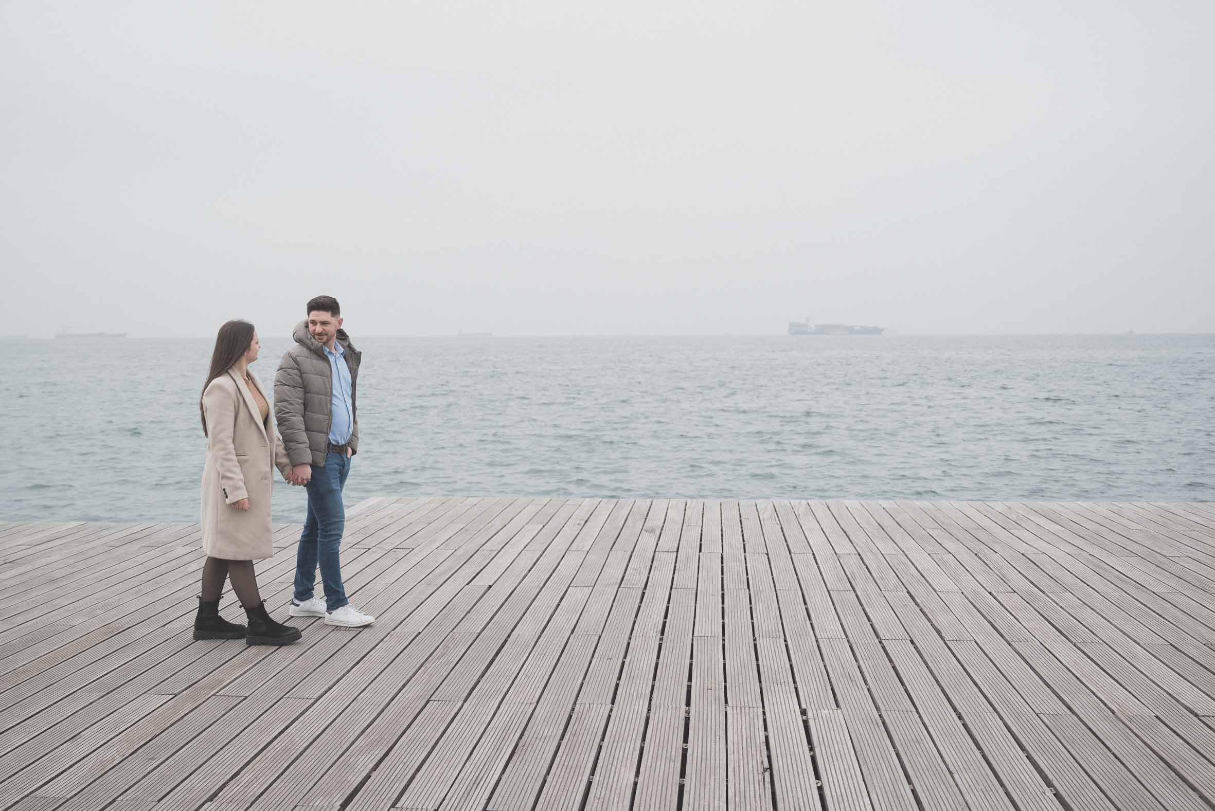 Τον Ιανουάριο του 2025, ο Κωνσταντίνος και η Βασιλική επέλεξαν την καρδιά της Θεσσαλονίκης για την pre-wedding φωτογράφισή τους. Παρά το κρύο του χειμώνα, η ζεστασιά του ζευγαριού και η ιδιαίτερη αύρα της πόλης δημιούργησαν ένα μοναδικό σκηνικό στη Νέα Παραλία.