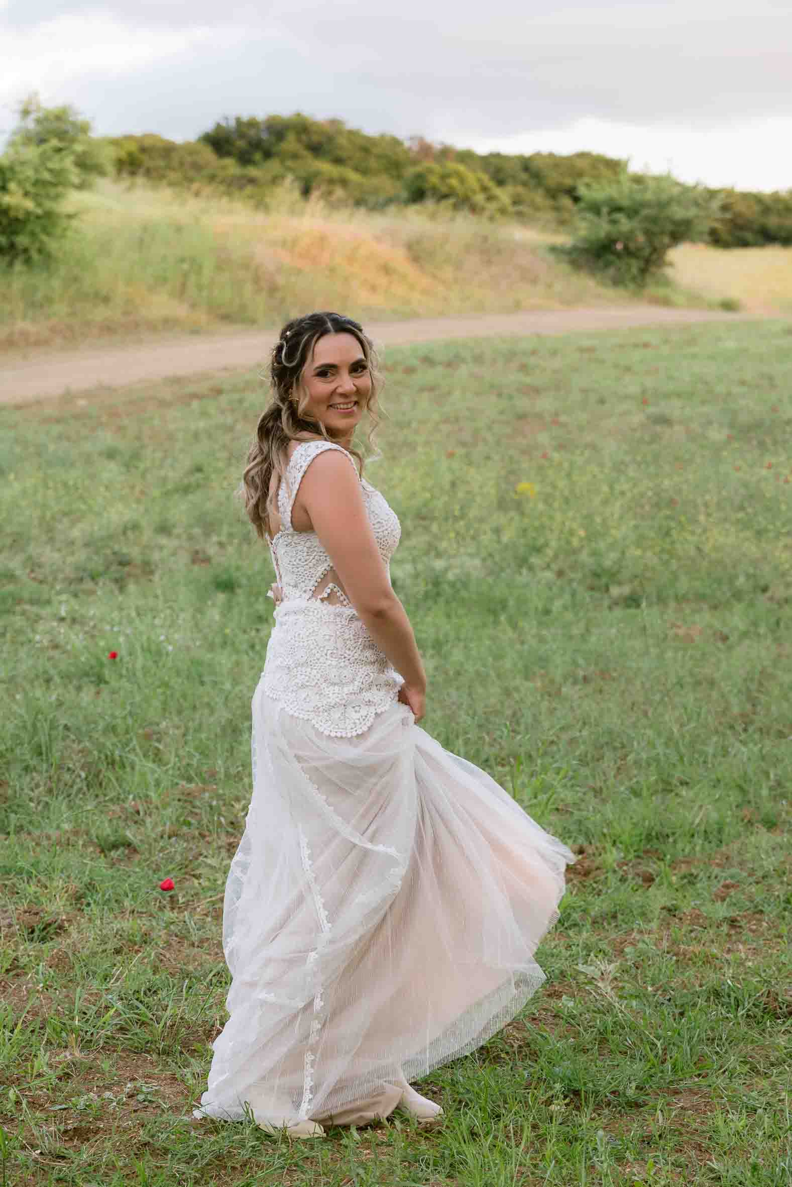 Το στυλ της ημέρας ήταν ξεκάθαρα boho, αλλά με ξεχωριστές πινελιές. Η Μαρία έκανε είσοδο με λευκές δερμάτινες μπότες καουμπόισσας, φέρνοντας μια μοναδική νότα στην τελετή και δείχνοντας πώς μπορεί η προσωπικότητα να γίνει μόδα.